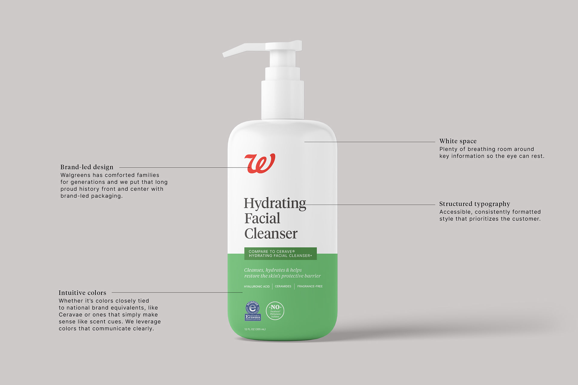 This project involved developing a packaging concept for Walgreens branded products that can flex across the retailer's many categories. With extensive exploration and collaborative discussions with partners and leadership, I developed a foundational system that feels approachable, friendly, modern, and trustworthy. And most importantly, iconically Walgreens.